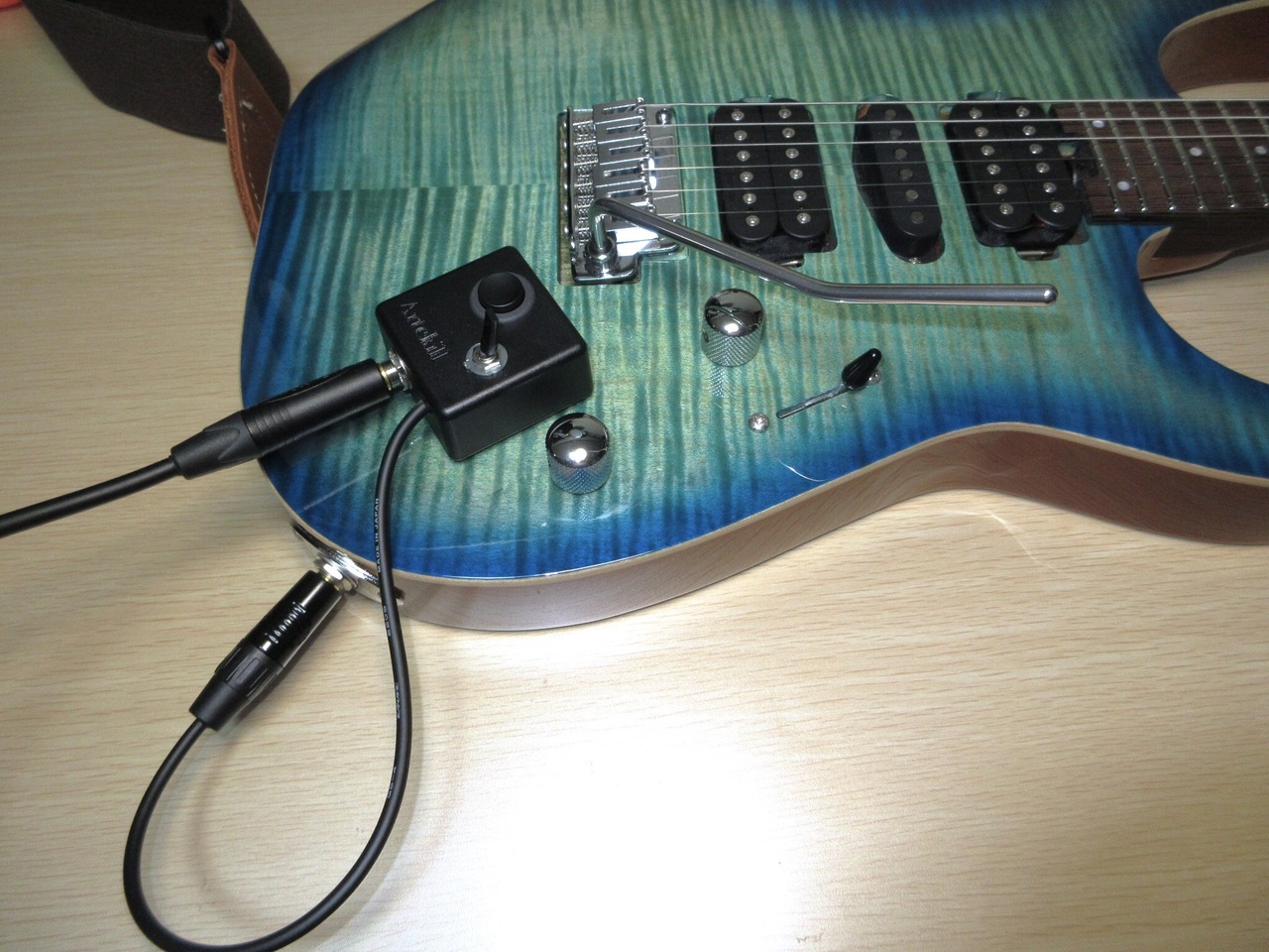 強力な粘着テープを使用してしっかりと取り付けでき、必要に応じて取り外すことができます。付属のケーブルをギターのアウトプットジャックに接続し、本体のアウトプットジャックとギターアンプやエフェクターを接続して準備は完了です。