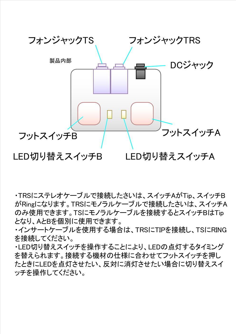 接続する機材に合わせてLEDの点灯するタイミングを内部スイッチで切り替えることができます。