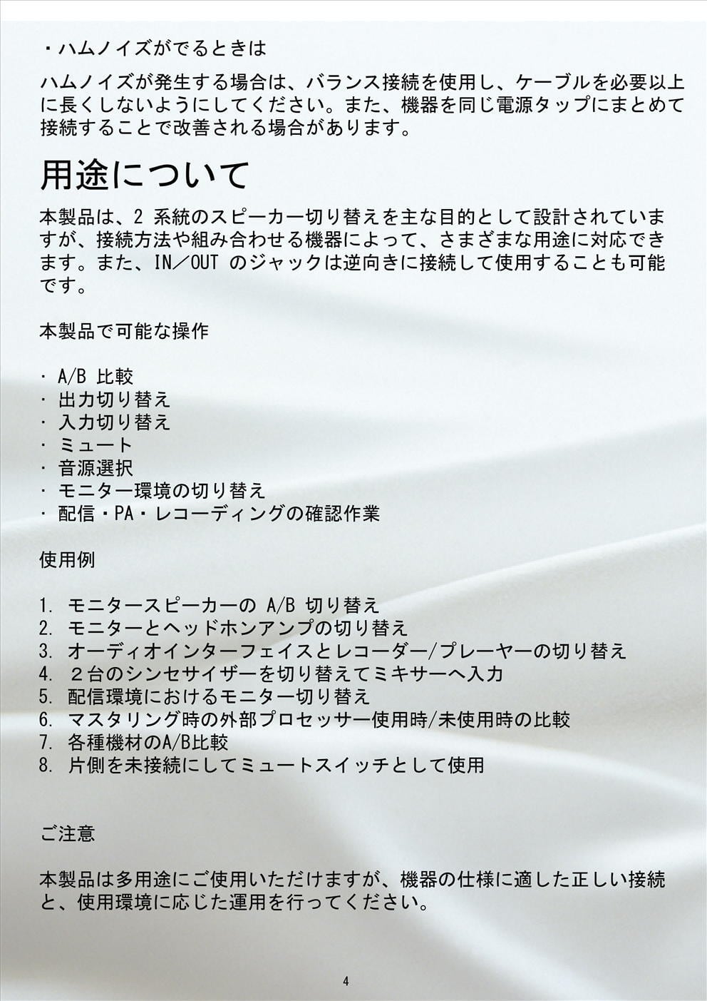 アンバランス接続でも使用可能ですが、長距離配線ではノイズの影響を受けやすくなります。