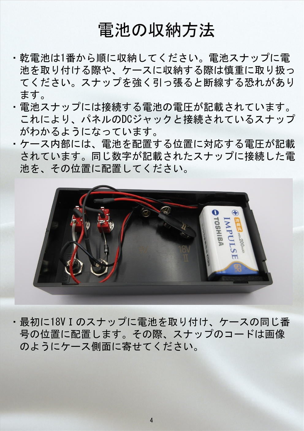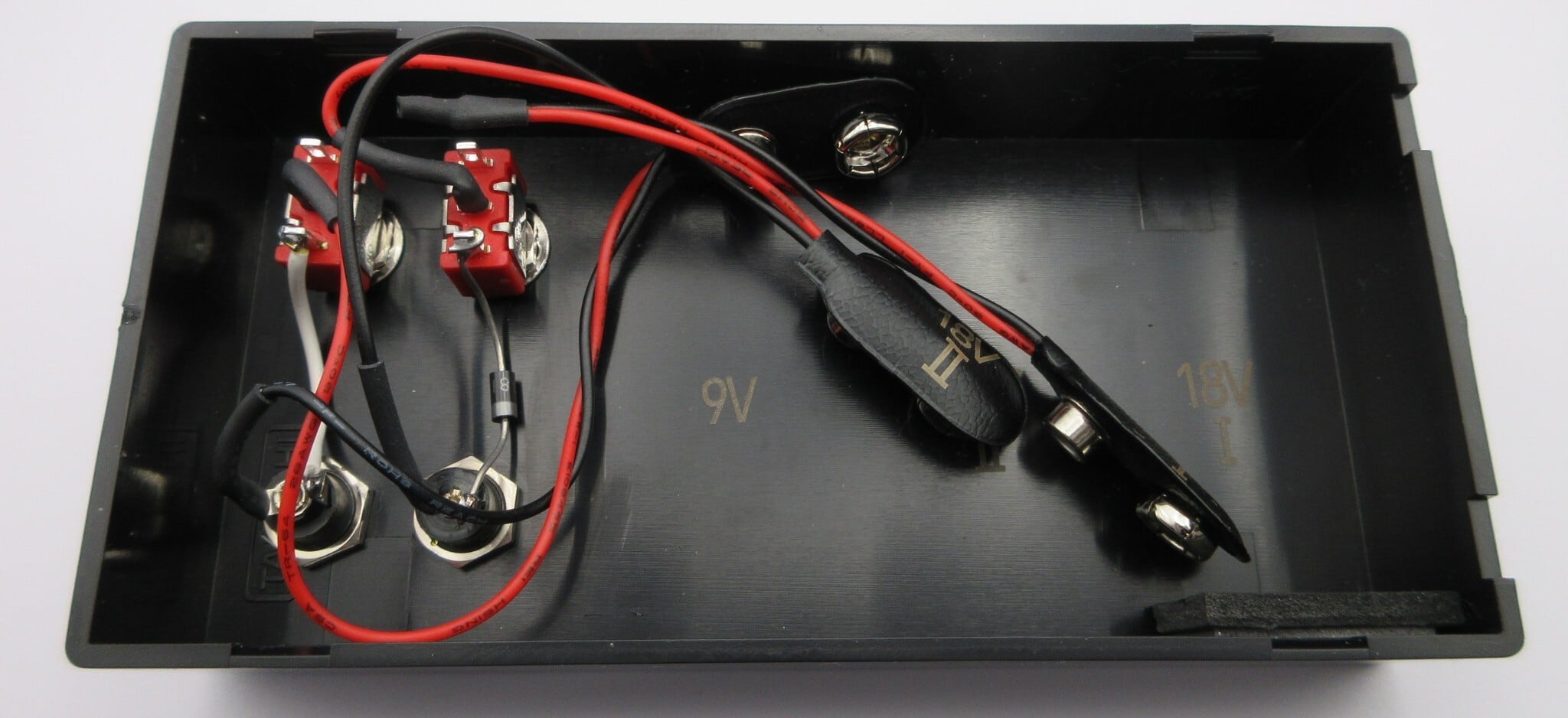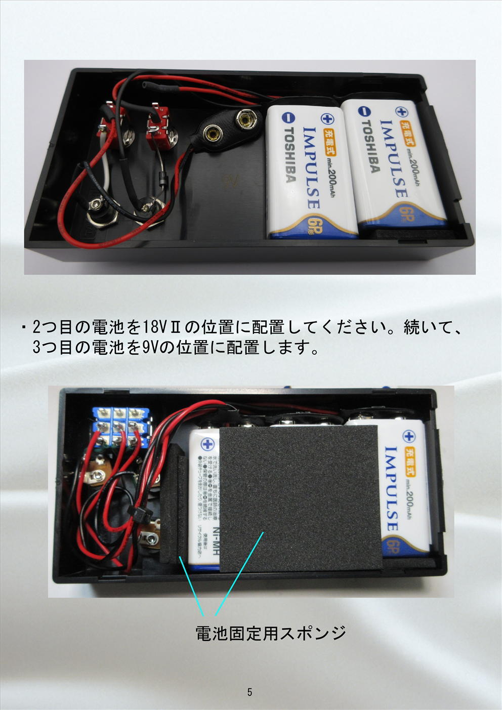 9V電池を3つケースに収納し、18Vと9Vの2つの電源供給を個別にすることができます。